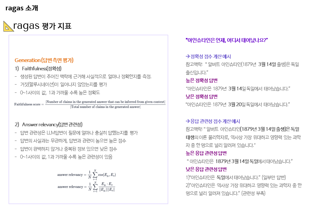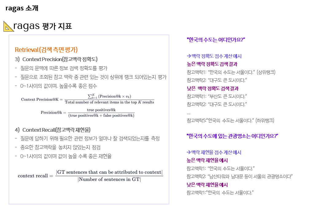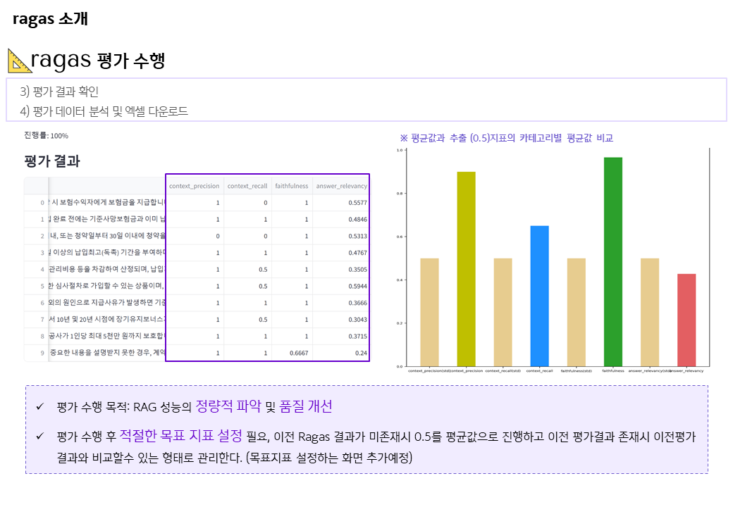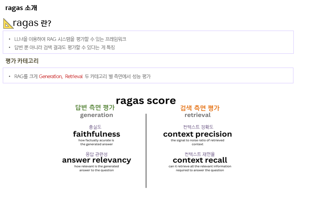 해당 Ragas관점에 필요한 부분을 작성했기에 공유드린다. (당사 R&D 담당 직원 작성)
