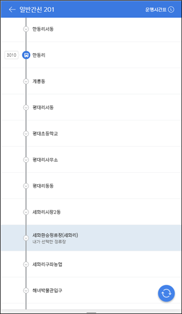 - 노선 버스 위치 목록/정류장 버스 도착정보는 온라인으로 실시간 호출되어야 함