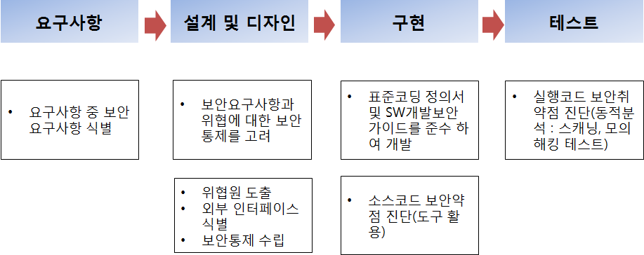 위에서 보안취약점 유형과 조치 방법에 대해서 간략하게 설명을 하였다. 그러면 행정안전부와 한국인터넷진흥원에서 설명하는 보안활동 수행 방법은 어떤 것인가?