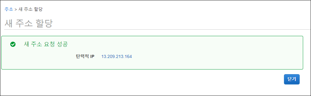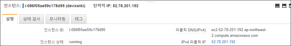 해당 인스턴스에 elastic IP 설정된 것을 확인가능
