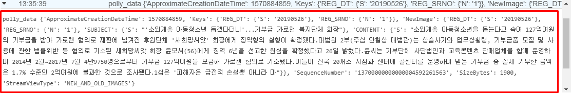 이제까지 DynamoDB와 Lambda를 Trigger 연결하였다. 이제 Trigger 연결된 Lambda에 DyanamoDB Insert 데이터가 잘 들어오는지 확인을 하고 Polly로 원하는 데이터를 보낼 수 있도록 데이터 정제 작업을 진행하도록 하겠다.