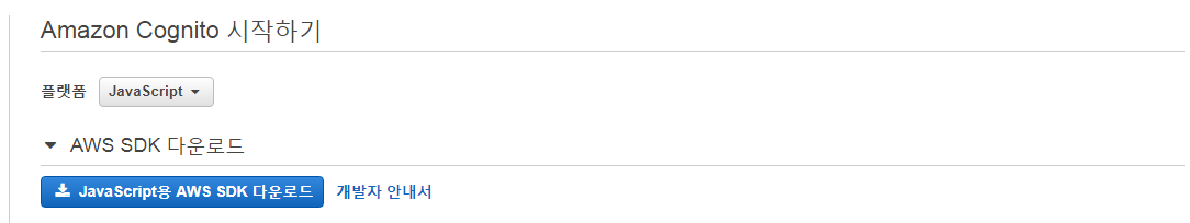 SDK 다운로드 버튼 아래를 확인해보면 Cognito 자격 증명을 얻은 소스가 존재한다.