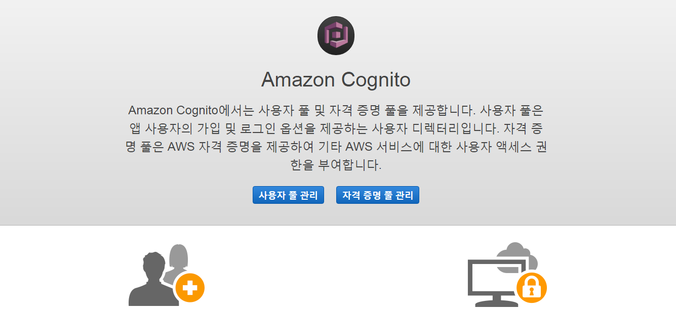 이번에도 Lambda의 언어는 Python으로 한다. Lambda Function만 만들고 Cognigo를 생성한다. AWS 콘솔에서 Cognito라고 검색 한 후 클릭을 하면 아래와 같은 화면이 나오게 된다.