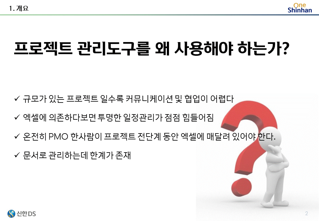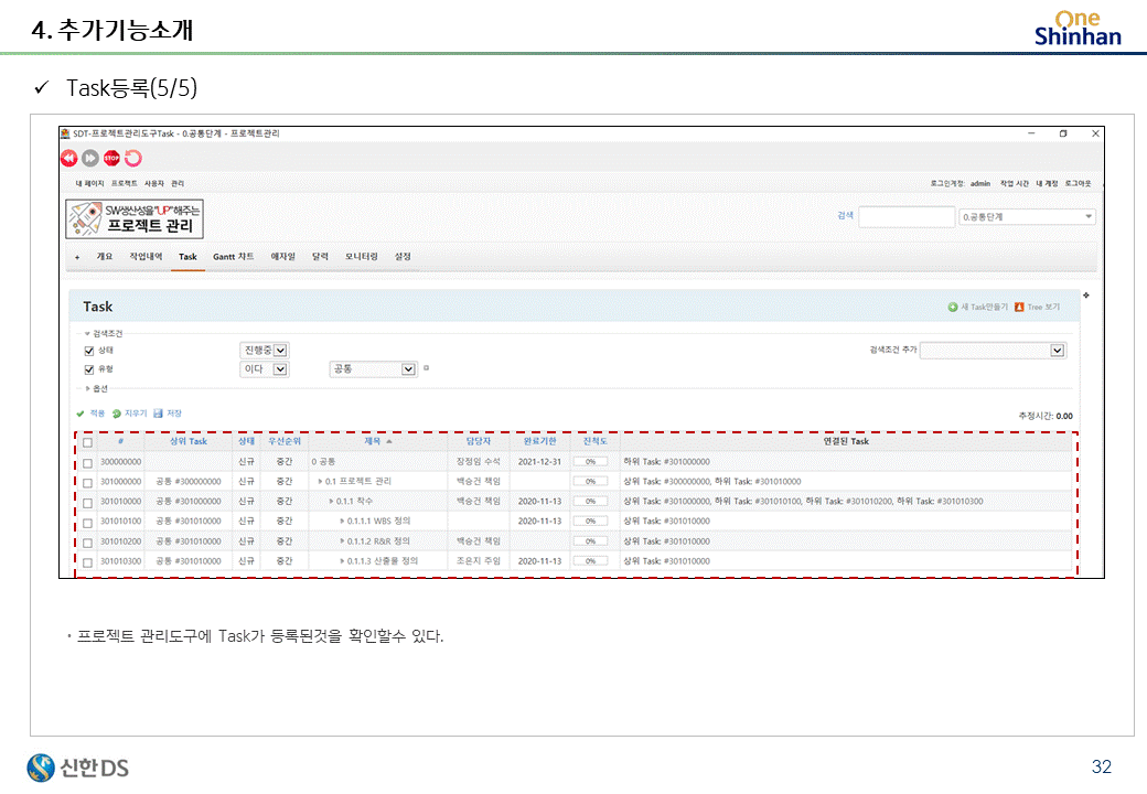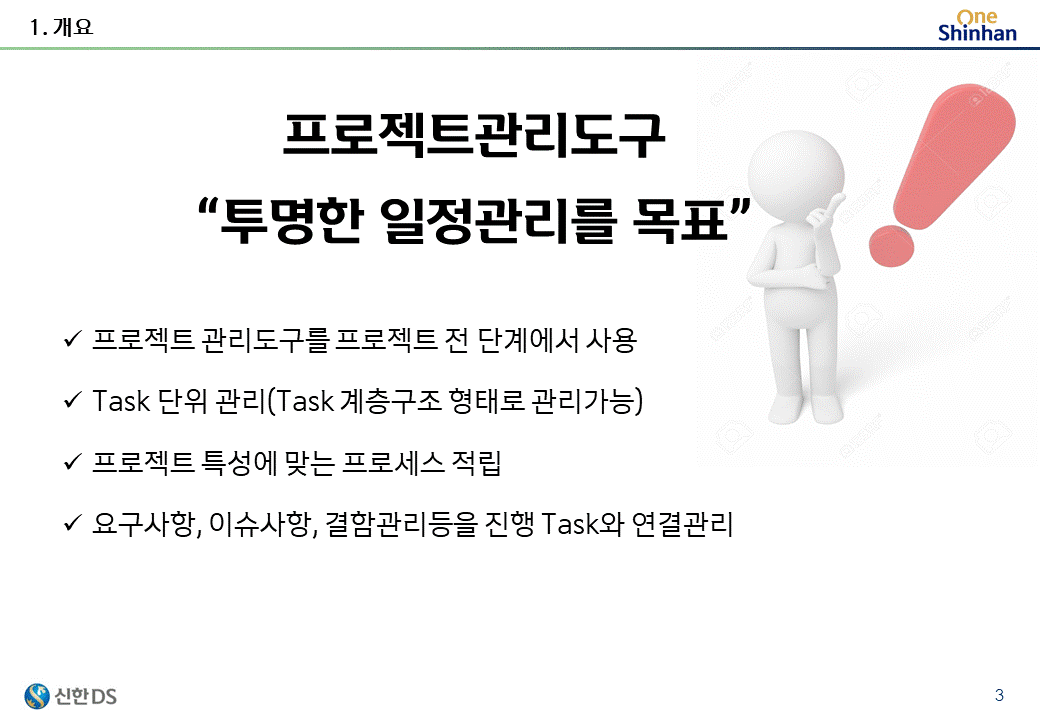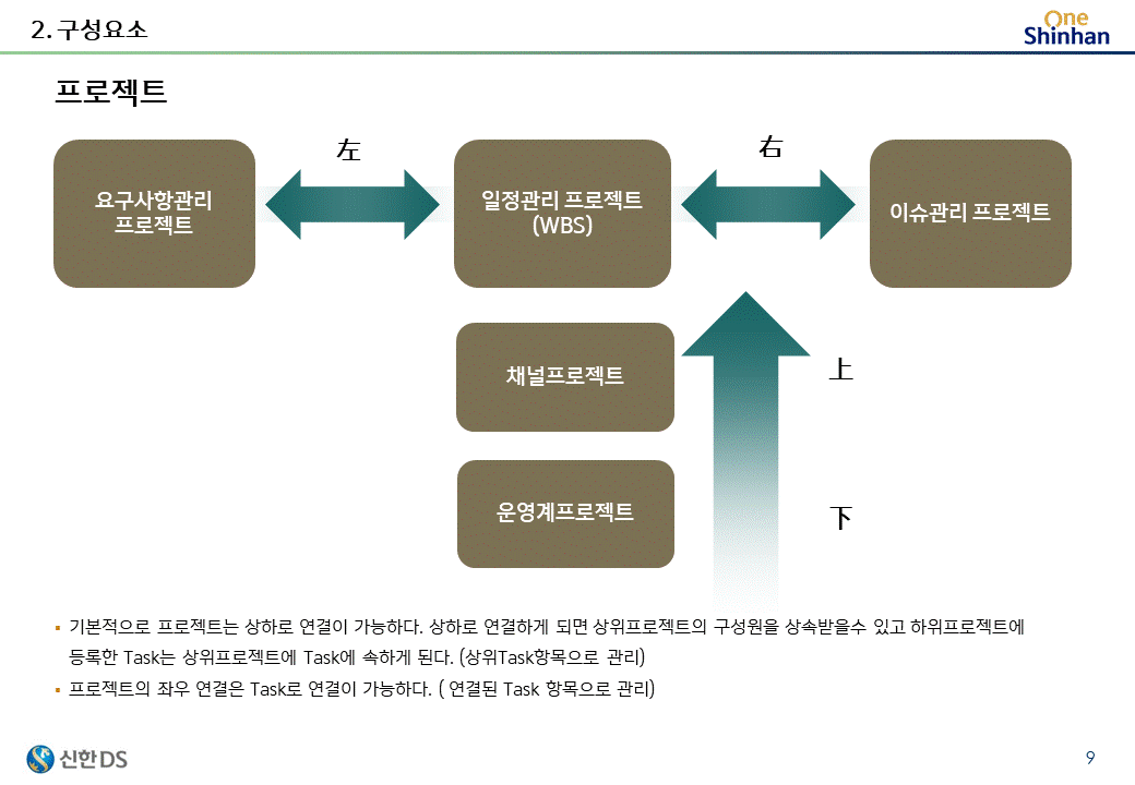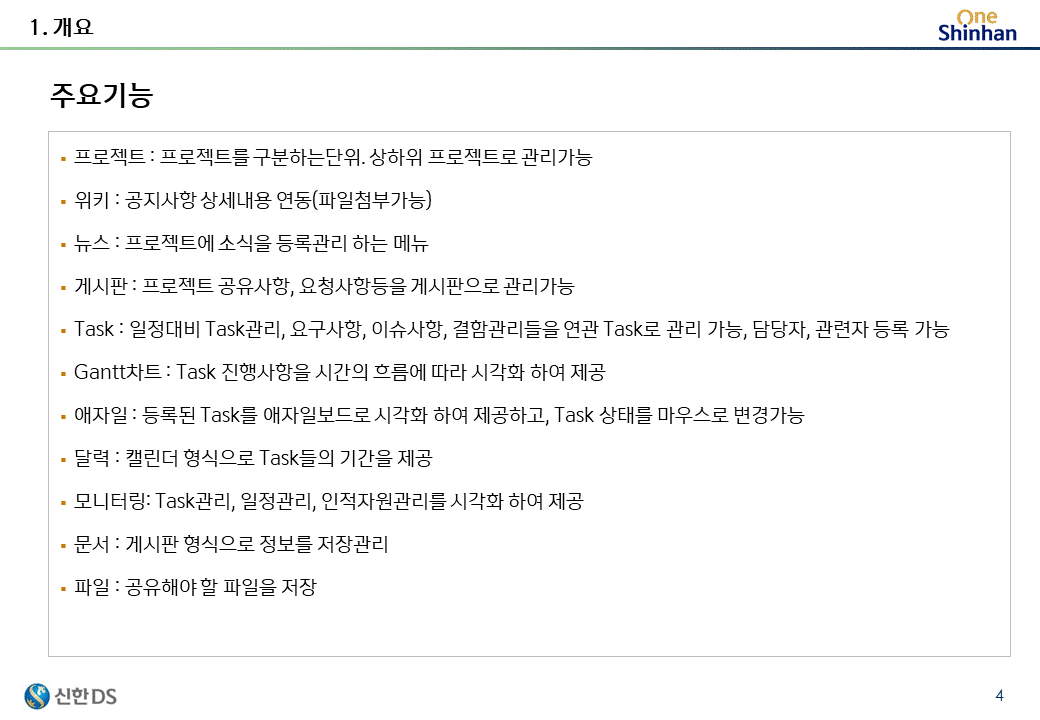 이제는 프로젝트 진행 시 필요한 일정관리(WBS), 요구사항관리, 이슈관리, 변경관리를 Task기반으로 관리할수 있는 시스템을 제공한다.