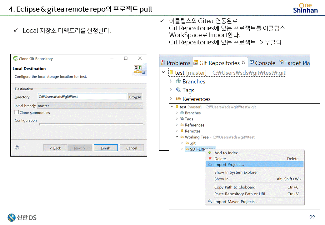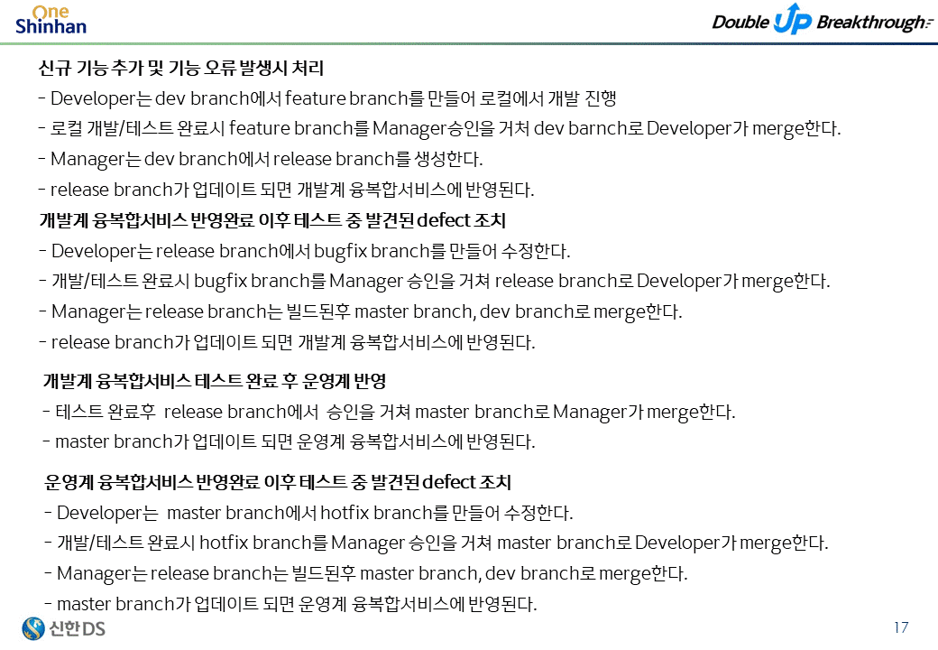 해당프로젝트에 필요사항을 확인한뒤에 repo, 권한, branch, 사용자를 설정하고 바로 사용할수 있게 제공한다.