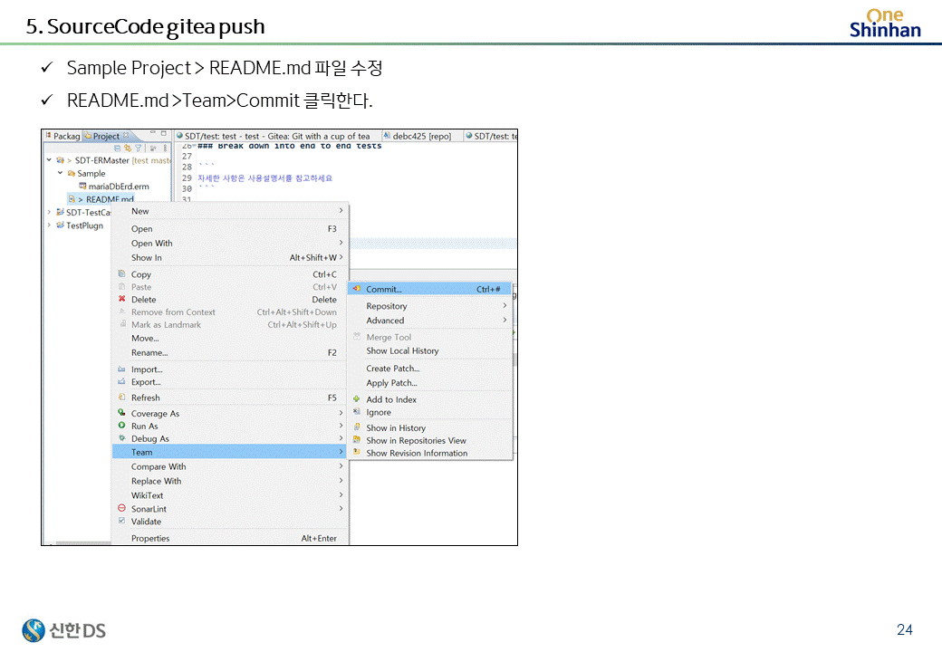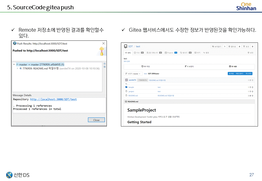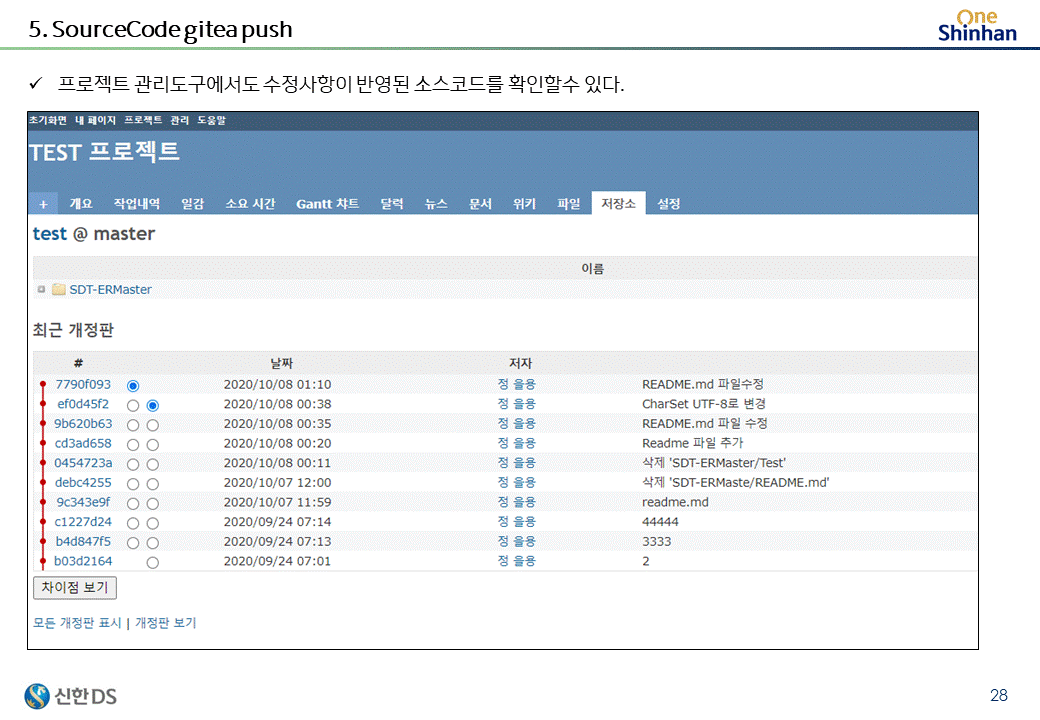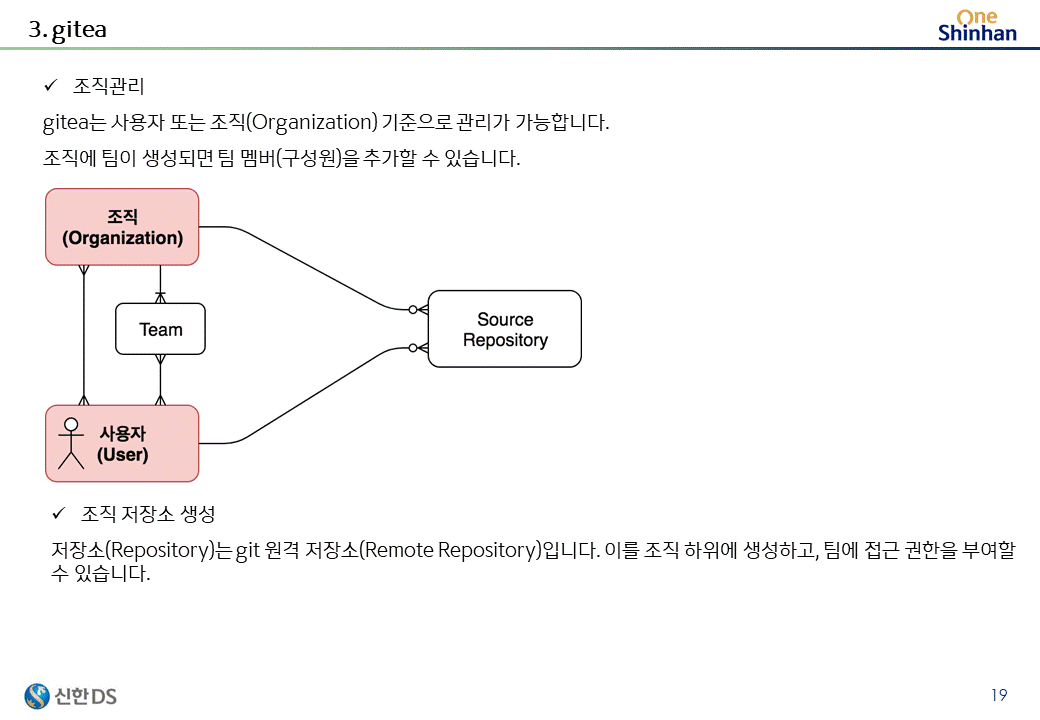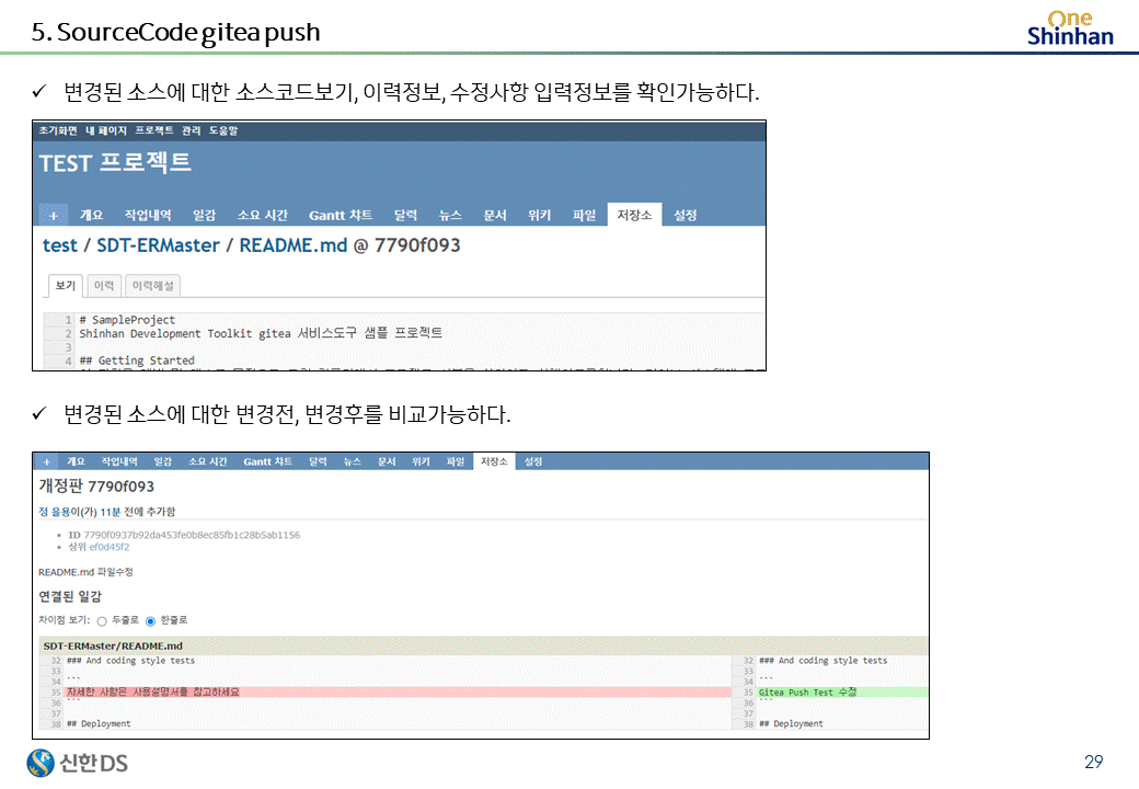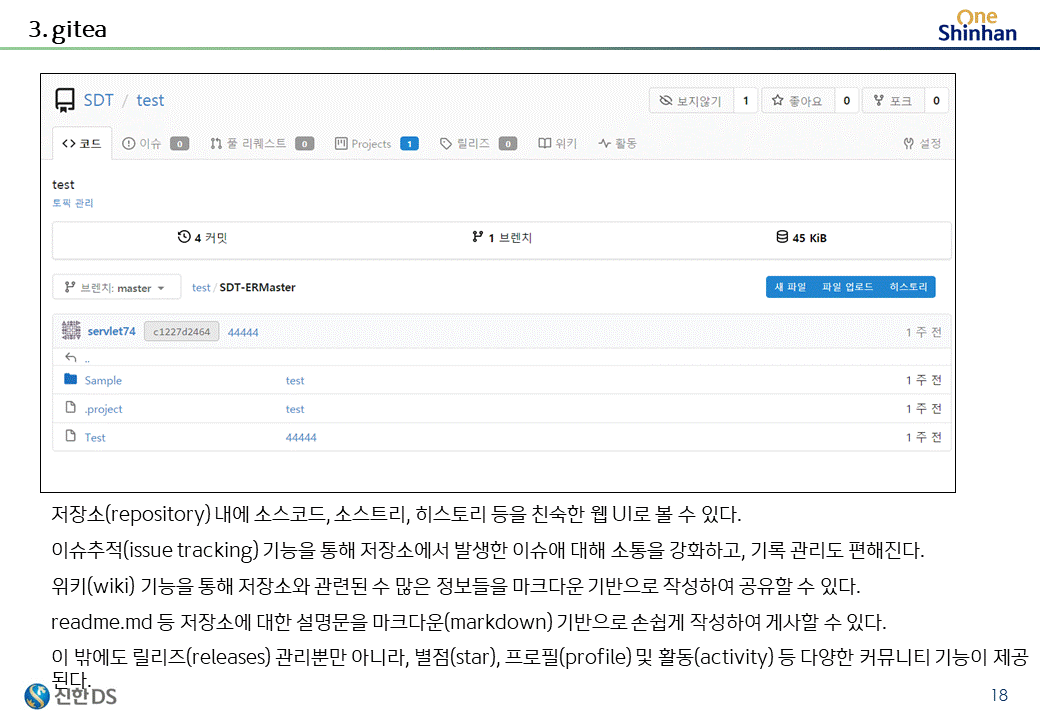 도커환경으로 구성된 gitea server를 커스터마이징하여 제공하고 있다.